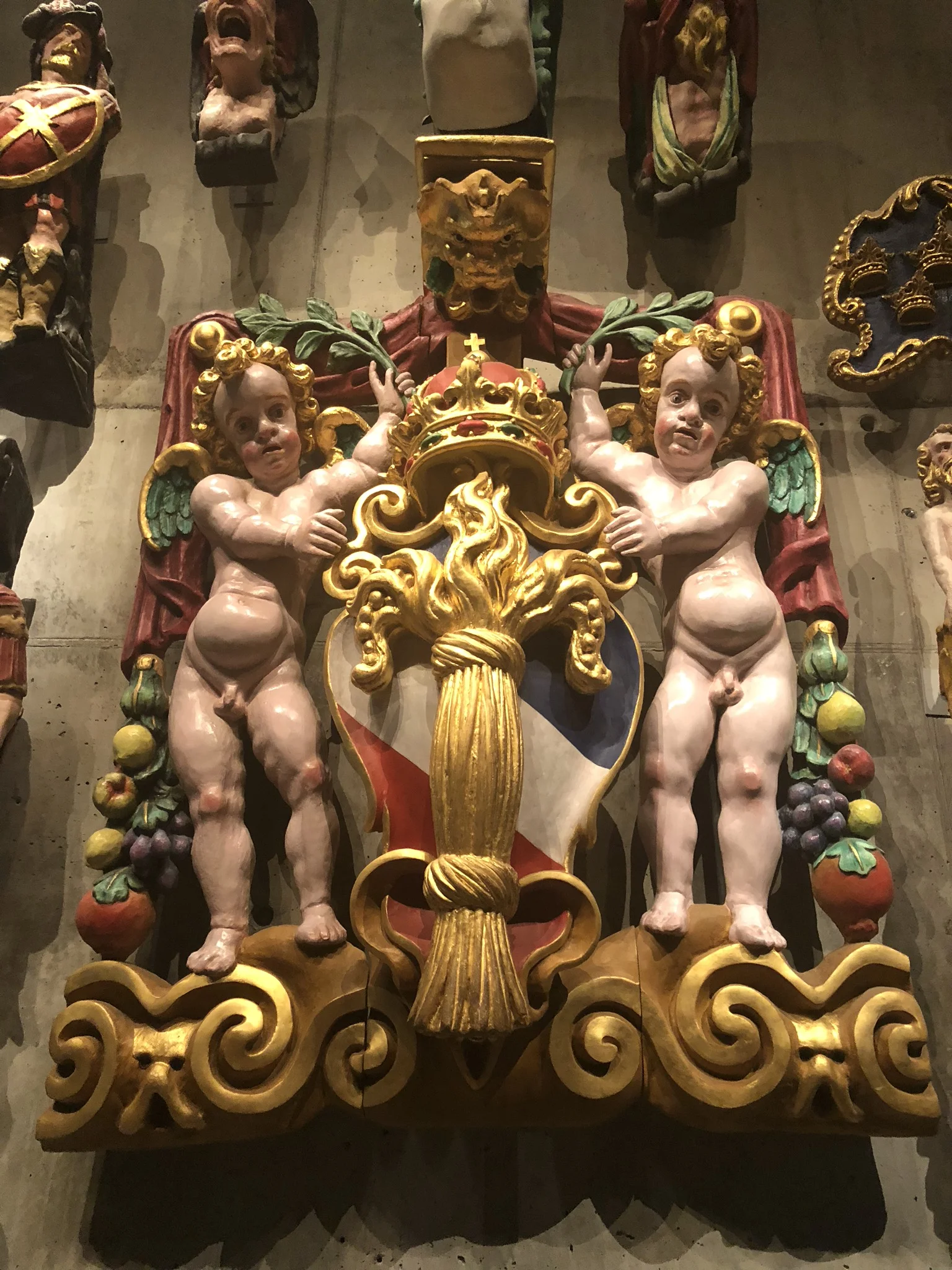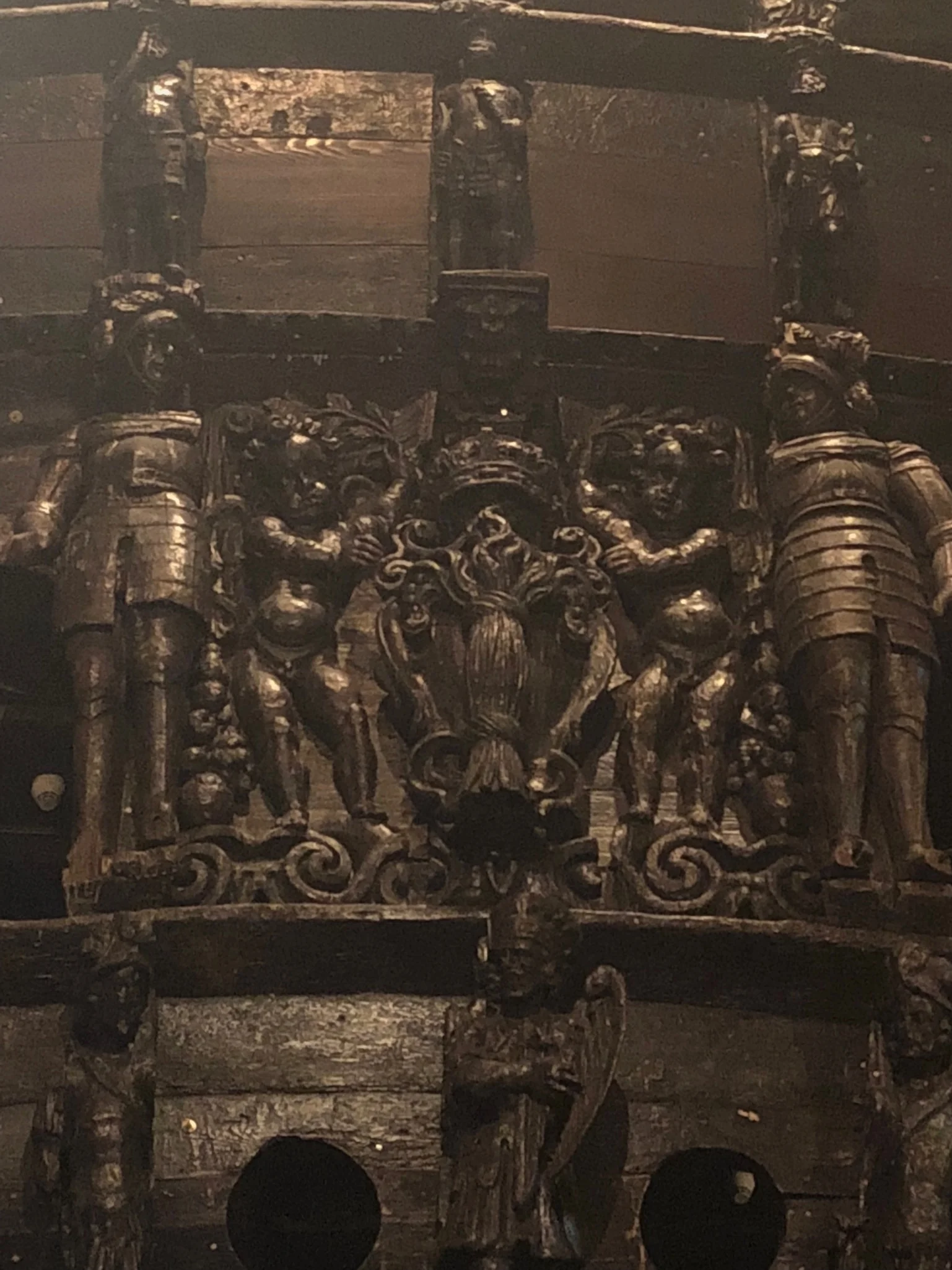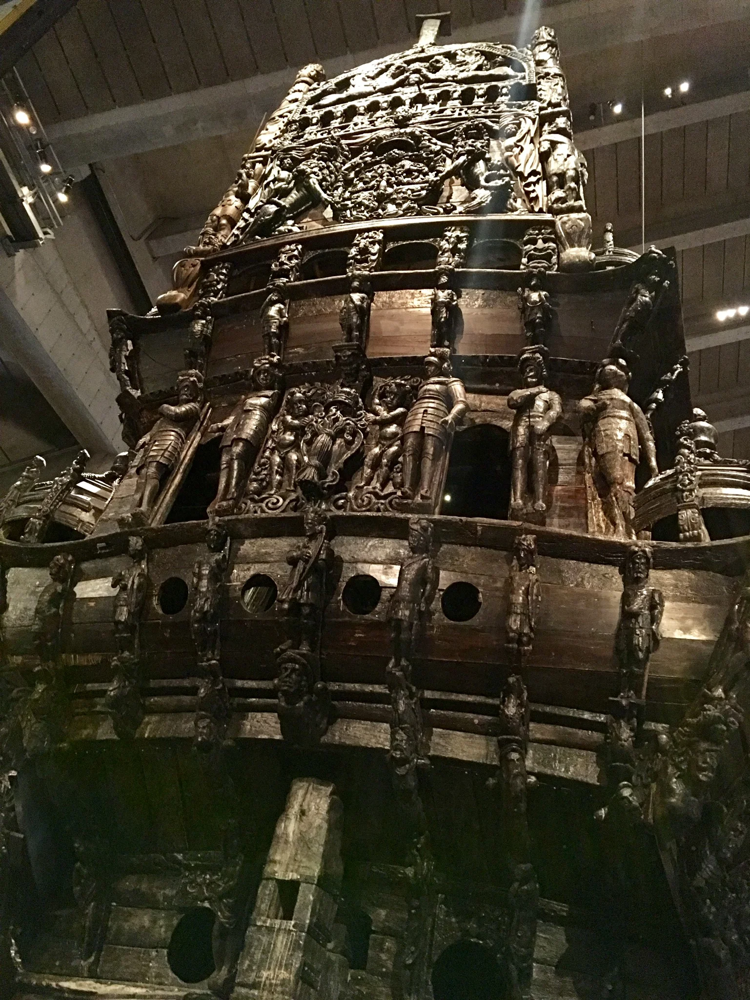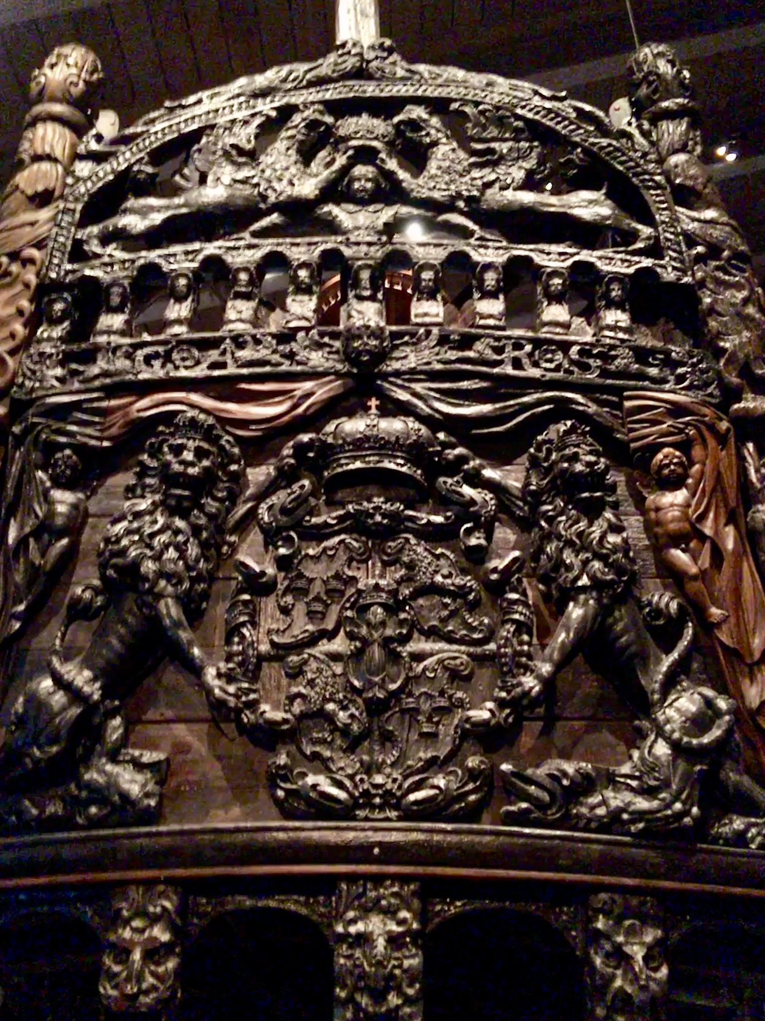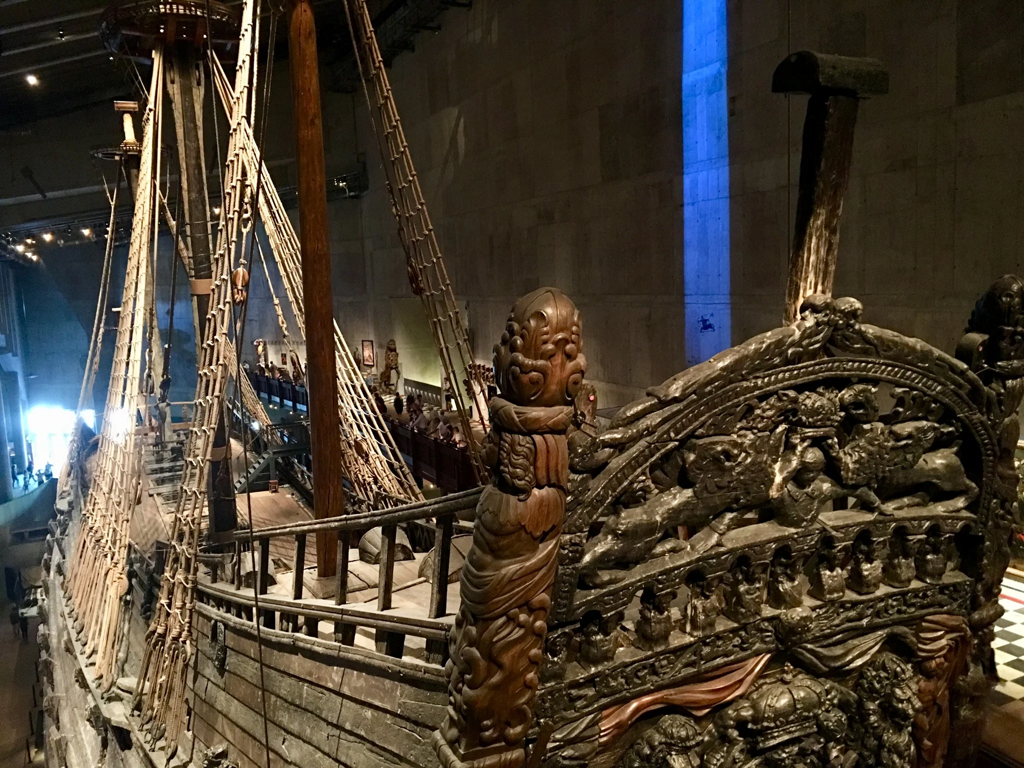 We then took a short bus ride to the Vasa Museum, which may have been our highlight in Stockholm. Vasa was a Swedish naval ship that sank on its maiden voyage in 1628, about one kilometer from where it first set sail. It was rediscovered in the 1950’s, largely intact, and is now on permanent display. Although the ship is mostly made up of wood, it once was also ornately painted, and the museum did a good job at scientifically recreating portions of the ship, as they once must have looked. This can be seen in the pictures we took of the Vasa family crest.