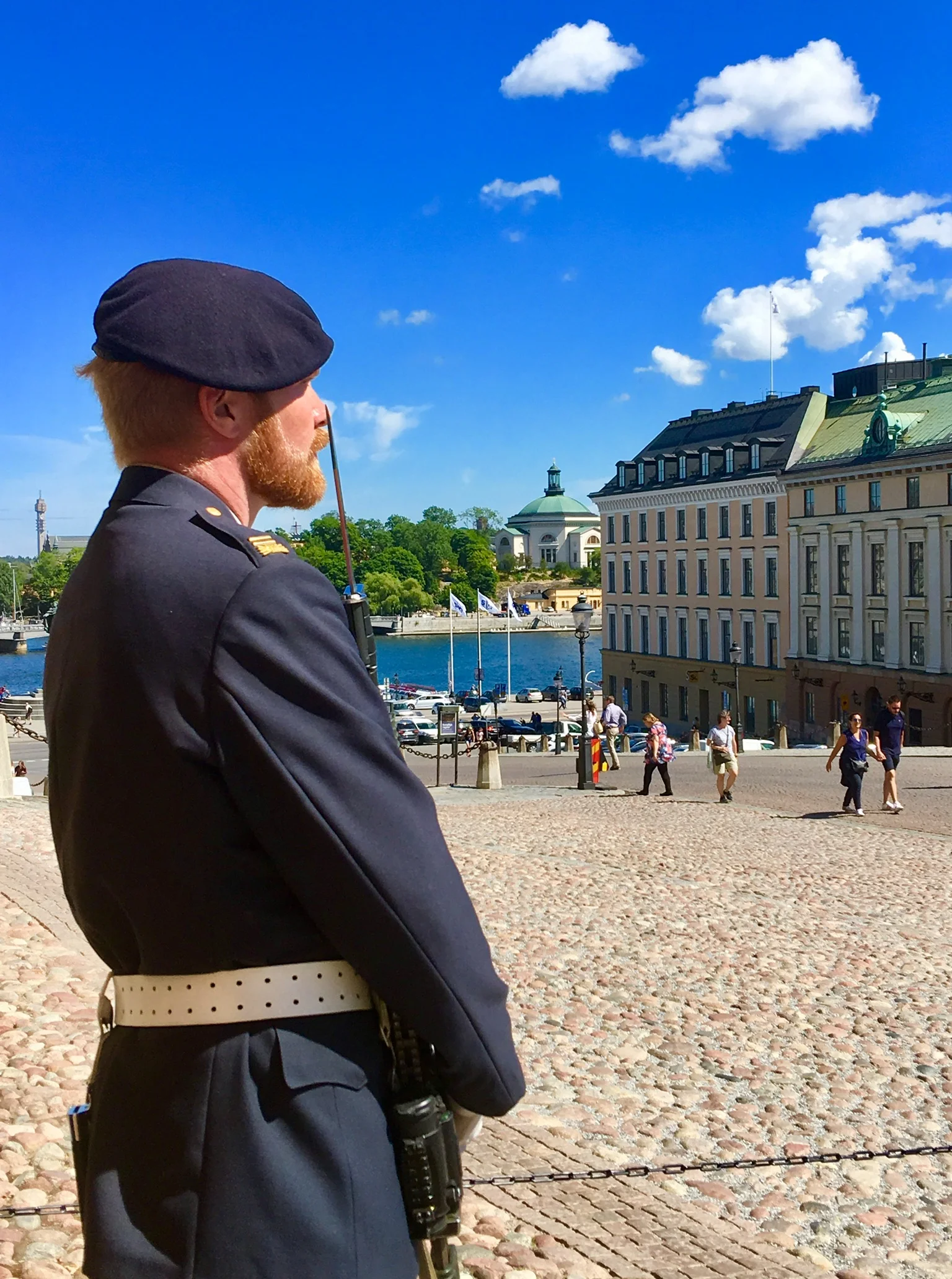 After finishing the laundry and dropping it off back at the hotel, we had a sandwich and quiche on the patio at a cafe called Chokladkoppen, which overlooked the Nobel museum in the Old Town Square. We walked around the Royal Palace which, while considered the ‘official’ residence of the King and Queen of Sweden, is now used mostly for ceremonial and official functions, as the Royals actually live in their ‘other’ palace.