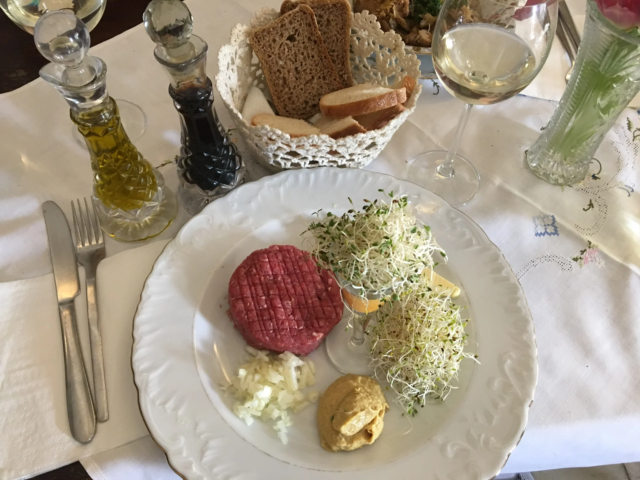 Neither of us were in a mood to do much else that day. We did have a lovely meal of steak with wine, where we talked about the experience of our visit.