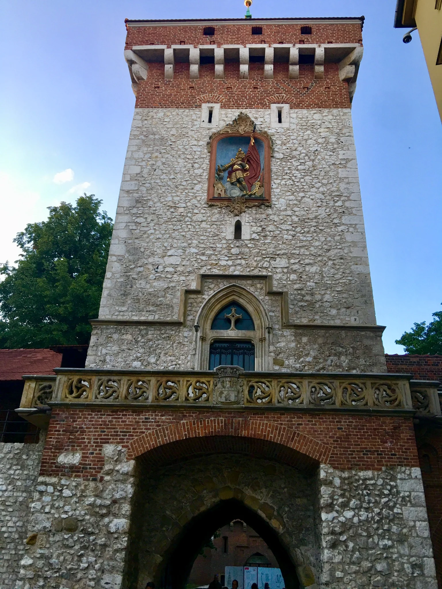 Immediately after arriving in Krakow, we instantly fell in love with this city – which has been the highlight of our trip so far! It has such an energetic vibe, filled with young adults, but not so overcrowded with tourists so as to be frustrating. Plus, the Polish people are so gentle and kind! We walked the 15 minutes from the train station to our hotel, which was mostly through a very modern mall, and then through Planty Park, which surrounds the Old Town in a circle, where the original city walls once stood. As we arrived at the hotel, we were pleased to discover it had both a lift and air conditioning, which was a little ironic as the weather had now significantly cooled down. Melissa bought a scarf from one of the vendors in the market square and Colin put on some clothes that he had packed for the Scandinavian portion of the tour.