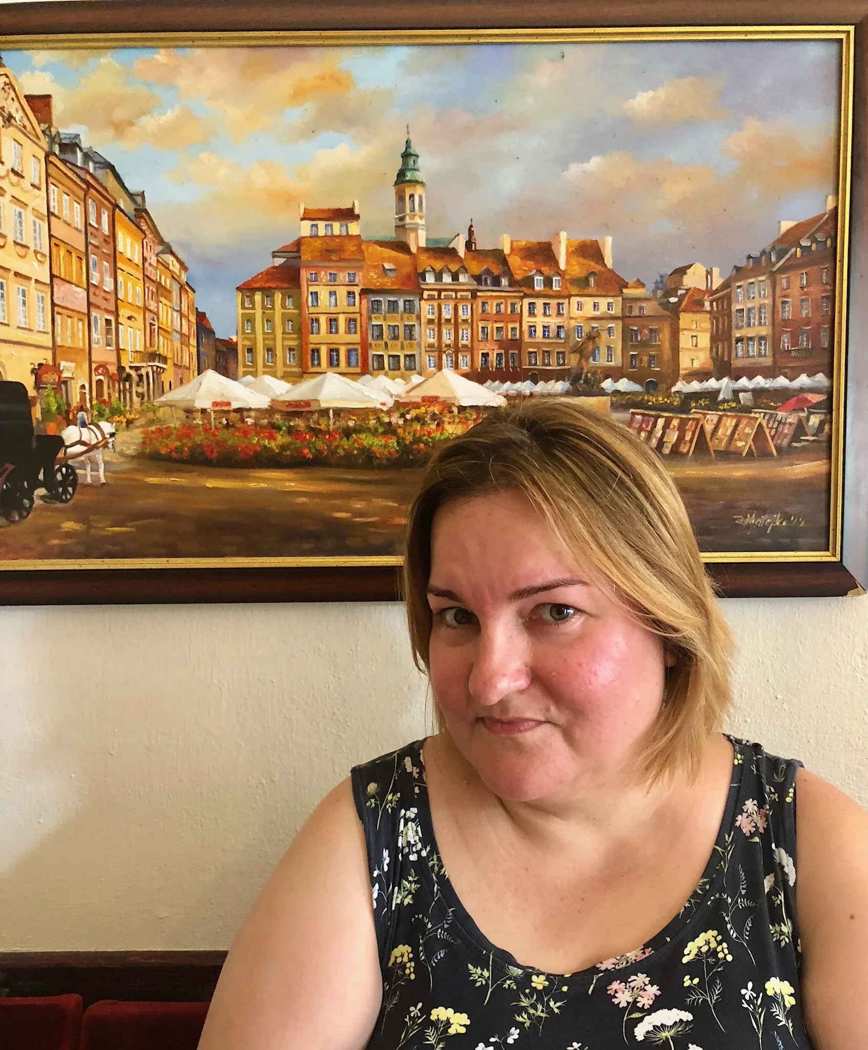After a short, uneventful flight, we arrived in Warsaw, Poland where we took a taxi to the perimeter of the old city and walked to our hotel which was within a pedestrianized area. Although we could easily see our hotel, we had quite a challenge actually finding the entrance, as it was a bit hidden. We rang the doorbell and were let in, then climbed a flight up where we were warmly greeted at reception. Since this old hotel was a UNESCO World Heritage site, it did not have a lift (elevator), which was a shame, as our room was another two flights above the floor that the reception was on. We were actually given the choice of three rooms on that floor, which were all decorated differently – we chose the whimsical Alice in Wonderland themed room, which was very comfortable, despite the lack of air conditioning (while we were staying there the temperature rose to 30˚C!).