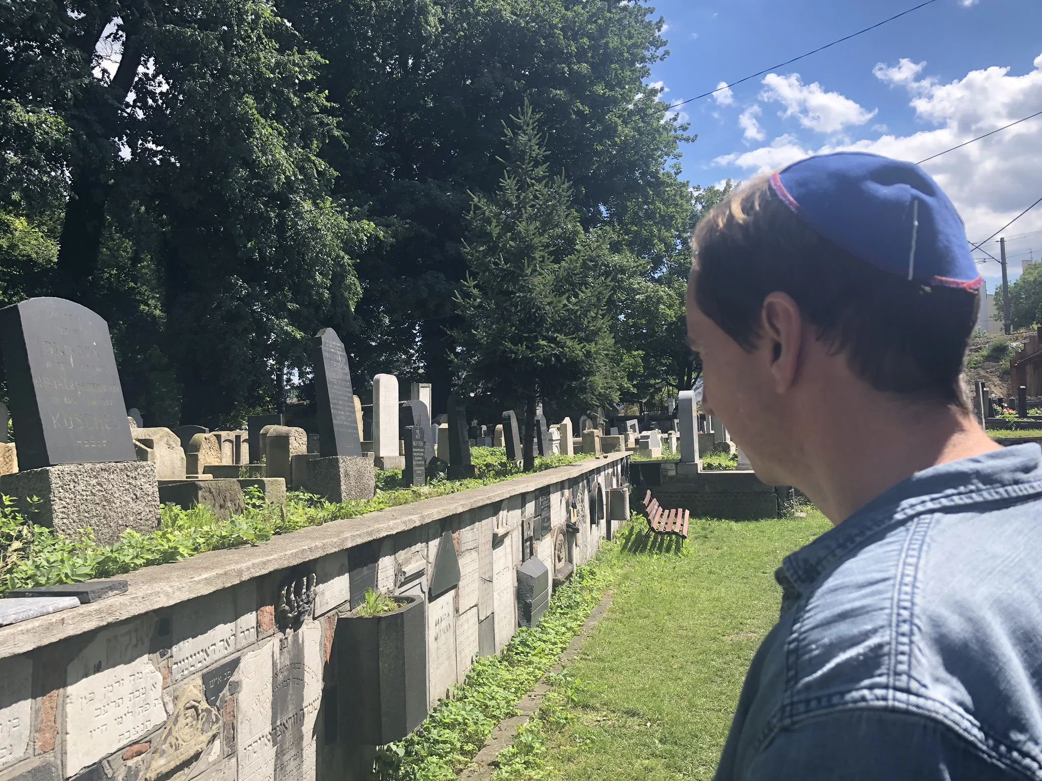 Colin wearing Yarmulke at the Jewish Cemetery