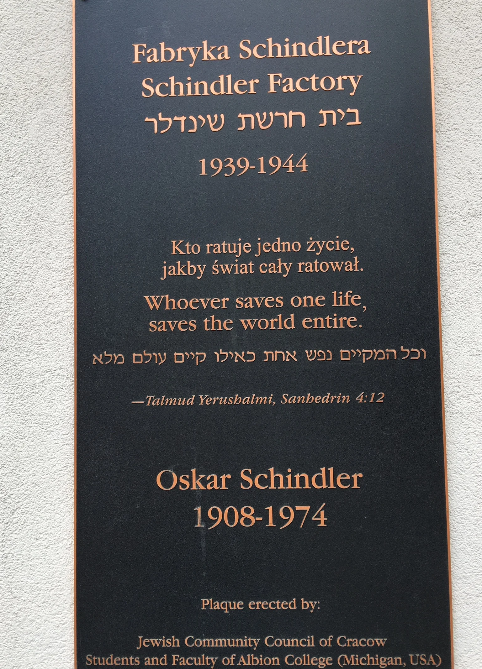We then walked to Schindlers factory museum which sadly was closed, but we took a few pictures of it. This factory was made famous in the movie, “Schindlers List”, which told the story of how Oskar Schindler saved the lives of countless Jewish people by employing them.